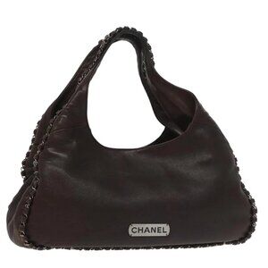 CHANEL Chain Hand Bag Lamb Skin Brown CC Auth yk15907AM