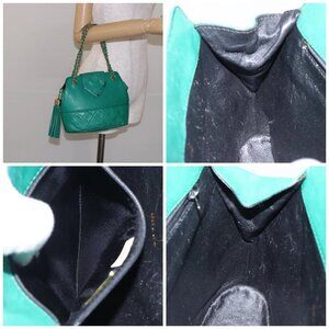 CHANEL Chain Hand Bag Lamb Skin Green Gold CC