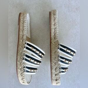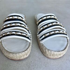 CHANEL Chain Lambskin Espadrille Slip On Sandals EU 37 US 6-6.5 Black & White