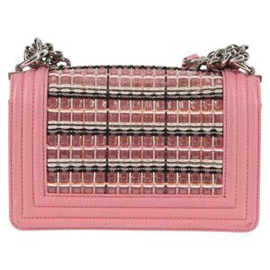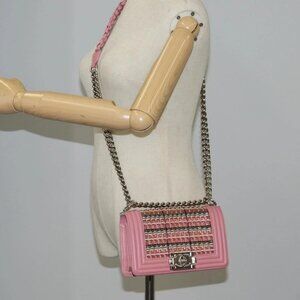 CHANEL Chain Matelasse Boy Chanel 20 Bag Lamb Skin Pink CC Auth BA1257AM