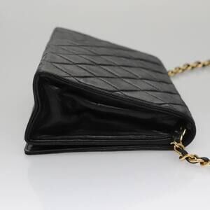 CHANEL Chain Matelasse Shoulder Bag Lamb Skin Gold Black CC
