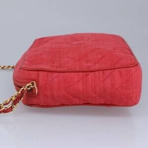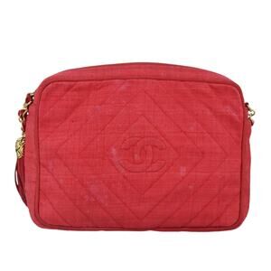 CHANEL Chain Shoulder Bag Canvas Red Gold CC