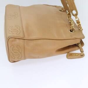 CHANEL Chain Shoulder Bag Caviar Skin Beige Gold CC