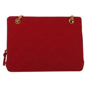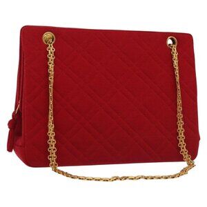 CHANEL Chain Shoulder Bag Cotton Vintage Red Gold CC Auth