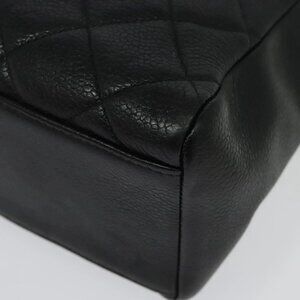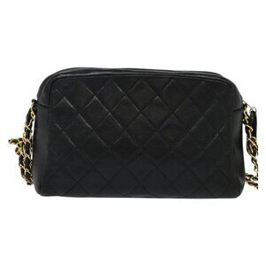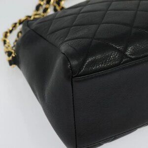 CHANEL Chain Shoulder Bag Grained Calf Skin Black Gold CC Auth PP875