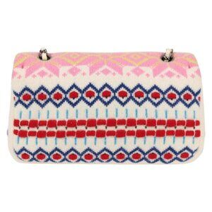 CHANEL Chain Shoulder Bag Knitted Fabrics White Silver CC Auth 128556M