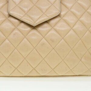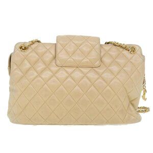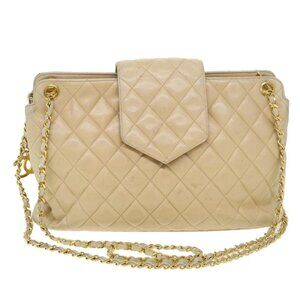 CHANEL Chain Shoulder Bag Lamb Skin Beige CC Auth 38451