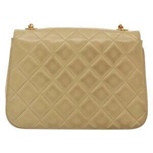 CHANEL Chain Shoulder Bag Lamb Skin Beige Gold CC Auth 136820