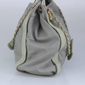 CHANEL Chain Shoulder Bag Leather Gray Gold CC