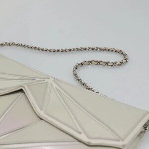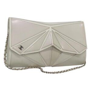 CHANEL Chain Shoulder Bag Leather Gray Silver CC Auth
