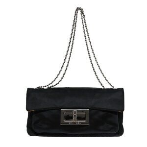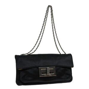CHANEL Chain Shoulder Bag Satin Black CC Auth