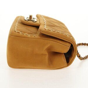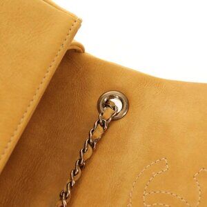CHANEL Chain Shoulder Bag Suede Yellow Gold CC Auth 145362A