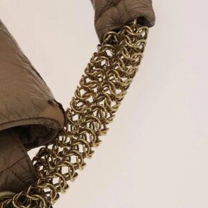 CHANEL Chain Shoulder Bag Vinyl Coated Leather Beige Gold CC