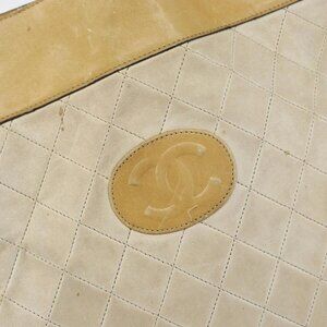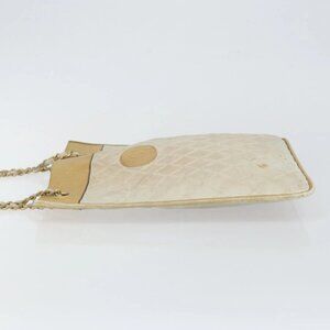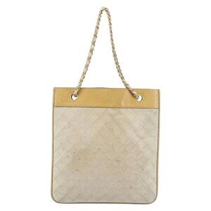 CHANEL Chain Tote Bag Lamb Skin Beige Gold CC Auth gh972