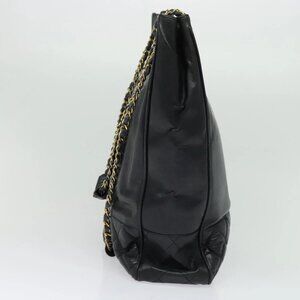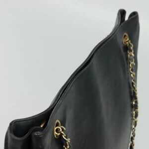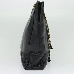 CHANEL Chain Tote Bag Lamb Skin Navy Gold CC