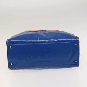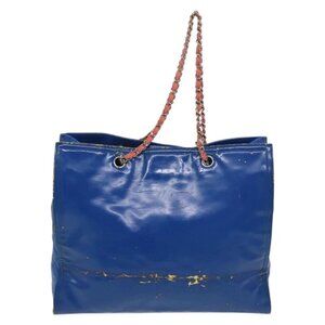 CHANEL Chain Tote Bag Patent leather Blue Silver CC