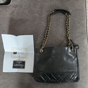 CHANEL Chain Tote Shoulder Crossbody Bag Lambskin Black Authentic with card and certificate of authenticity 100% guaranteed