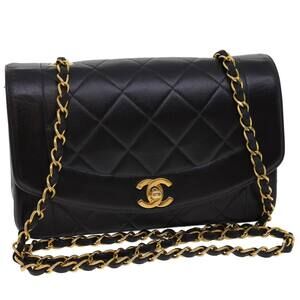 CHANEL Chain Turn Lock Diana Matelasse Shoulder Bag Lamb Skin Black