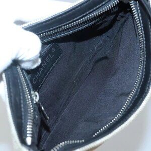 CHANEL Choco Bar Chain Camelia Shoulder Bag Canvas Gray Silver CC Auth 132885