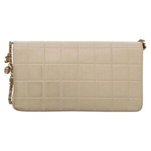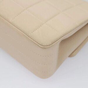 CHANEL Choco Bar Chain Shoulder Bag Lamb Skin Ivory CC Auth 110166A