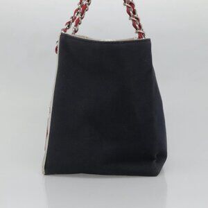 CHANEL Choco Bar Chain Shoulder Bag No5 Canvas Navy Silver CC Auth