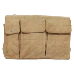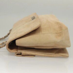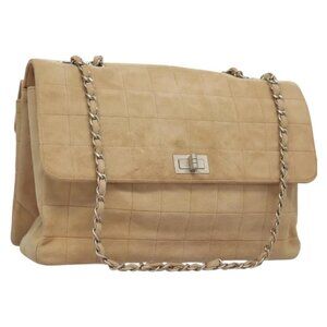 CHANEL Choco Bar Chain Shoulder Bag Suede Beige CC