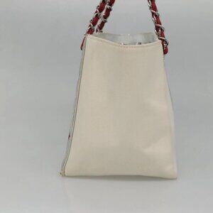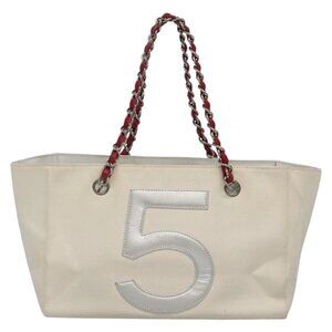 CHANEL Choco Bar Chain Tote Bag No5 Canvas White Silver