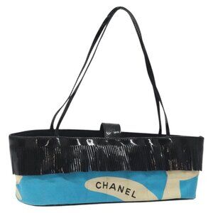 CHANEL Choco Bar Hand Bag Canvas Blue CC Auth