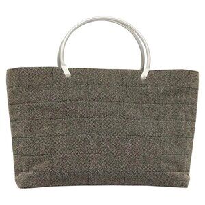 CHANEL Choco Bar Hand Bag Canvas Gray CC