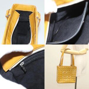 CHANEL Choco Bar Hand Bag Patent Leather Yellow Silver CC Auth mr1387