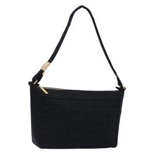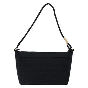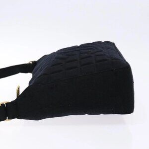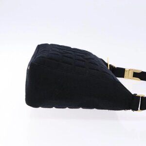 CHANEL Choco Bar Shoulder Bag Cotton Black Gold CC