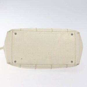 CHANEL Choco Bar Shoulder Bag Grained Calf Skin White Silver CC Auth 130495