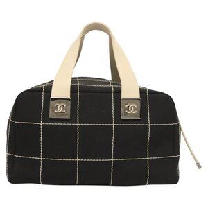 CHANEL Choco Bar line Hand Bag Canvas Black CC