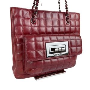 CHANEL Chocolate Bar Reissue 2.55 Tote Bag Quilted Lambskin Small Red Turnlock