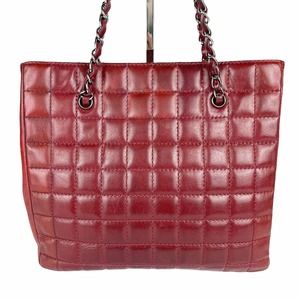 CHANEL Chocolate Bar Mademoiselle Reissue Square Tote Bag Red