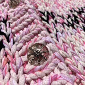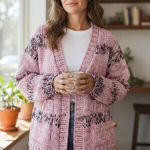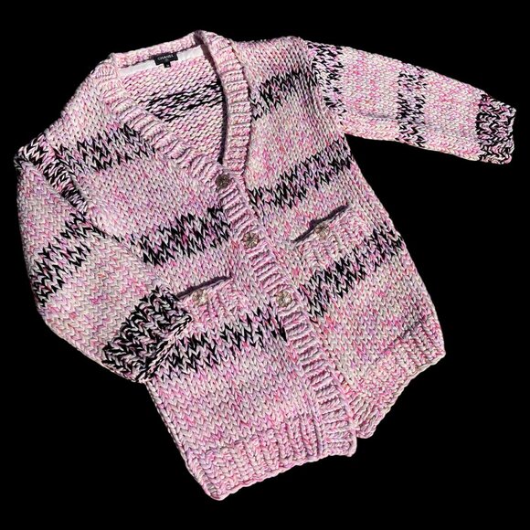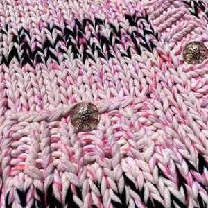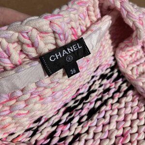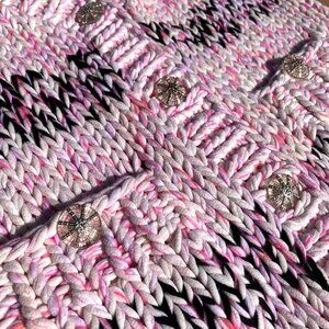 CHANEL Chunky Cable Knit Cotton Cardigan Sweater Jacket Pink Black Size 36 L XL