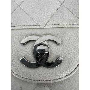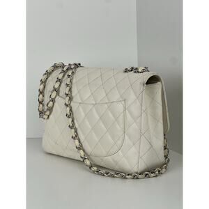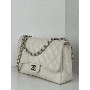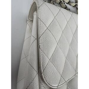 CHANEL Classic Jumbo Double Flap White Caviar Leather Shoulder Bag 2005-2006