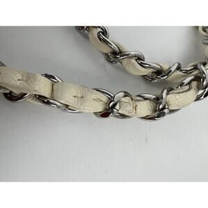 • Interior: White leather interior with second flap, zippered compartment, slip pockets