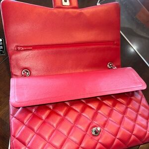 You’re bidding on a used CHANEL Classic Double Flap Maxi Bag in Red caviar leather with silver hardware that's in GREAT CONDITION. Current 2024 MSRP for the Maxi size Chanel Classic is $12,300.