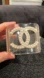 Elegant clear cuff featuring iconic CHANEL logo adorned with pearls. Perfect for adding sophistication to any look.