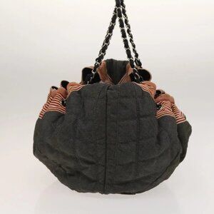 CHANEL Coco Cabas GM Tote Bag Canvas Gray Silver CC Auth 126427
