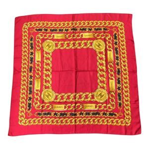 CHANEL Coco Mark Logo Red Chain Pattern Silk Scarf/Stole