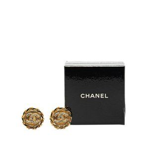 Used CHANEL Coco Mark Rhinestone Earrings, Gold Plated, Women's (SKU: GZl1blr2)