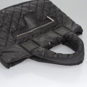 CHANEL Cococoon Hand Bag Nylon Black Silver CC