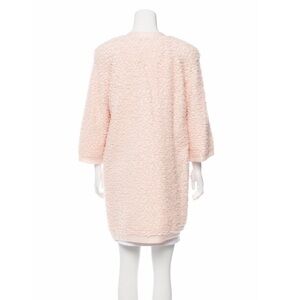 From Resent Collection. Blush Chanel textured metallic coat featuring structured shoulders, three-quarter sleeves and CC button closures at center front.