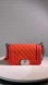 A striking CHANEL Boy Bag in a vibrant coral shade, crafted in durable caviar leather and finished with silver-tone hardware.