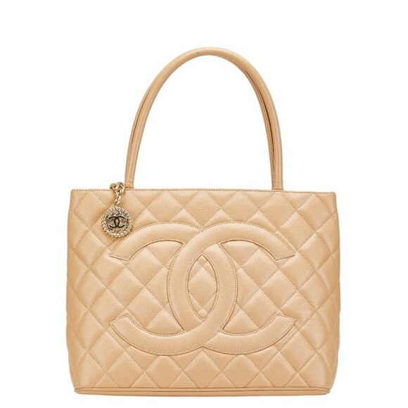 CHANEL Cream Caviar Leather Logo Tote Bag