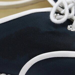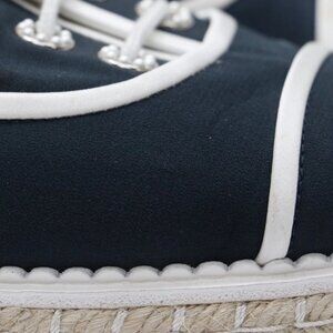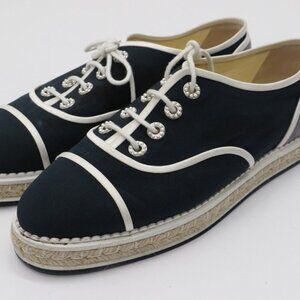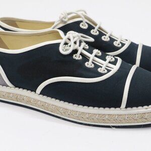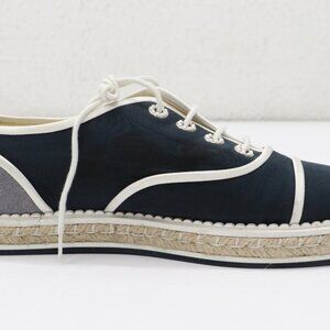 CHANEL Crepe Suede Lace Up Espadrilles Navy Grey Size 9.5 US/39.5 EU