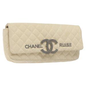 CHANEL Cruise Line Matelasse Clutch Bag Cream Silver CC Auth 118381