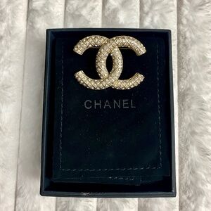Every IT Girl needs her luxury accessories & this will have people talking! Welcome to your new preloved CHANEL brooch ❤️ Another TRADE-SY purchase that I absolutely loved💎 This one was for special occasions & the way it STILL sparkles til this day is insane! No signs of tarnish & every crystal is still in place. The box has sticker residue on one side. There is also velvet packaging & a booklet💯 There is unlimited ways to style this brooch and that made it so much fun✨ Get this classic piece that can instantly elevate any look!